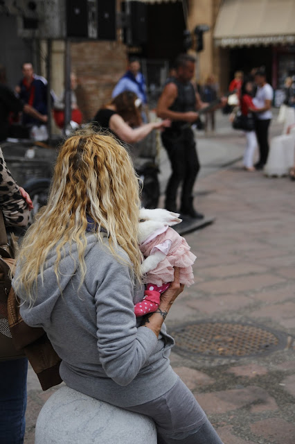 | Tavşanını bu şekilde giydirip de gezdiren ablamız da bize ilginç geldi 🙂 |