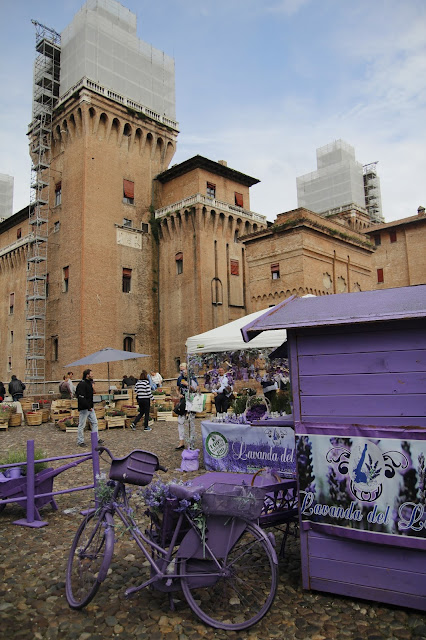 Ferrara kalesinin hemen yanında güzel bir pazar kurulmuştu, e biz de pazar gezmesini çok seviyoruz, durur muyuz hemen daldık, çok tatlı, değişik ürünlerin satıldığı bir pazardı burası. Lavanta satan bazı yerler vardı, bunun dışında sabun, değişik otlar, battaniyeler, örtüler satılıyordu.