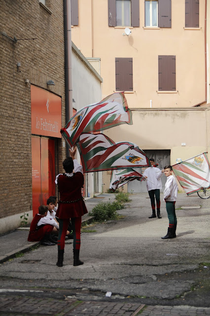 İtalya’da geleneksel bayrak yarışları yapılıyor, maalesef bu yarışlarla ilgili ayrıntılı bilgi edinemedim, ama şunu biliyoruz erkek çocukları yaş gruplarına ayrılıyor, çeşitli yaş gruplarından çocuklar bayraklarla gösteri yapıyor. Siena’da yapılan Palio yarışlarında da görmüştük, erkek çocukları bayrakları havaya fırlatıp alarak şov yapıyorlar, sanırım bu yarış erkek çocukları için bir çeşit kendini ispat etme göstergesi aynı zamanda. Toskana’ya gitmeden önce izlediğimiz “Under the Toscan Sun” isimli filmde de benzer sahneler görmüştük.