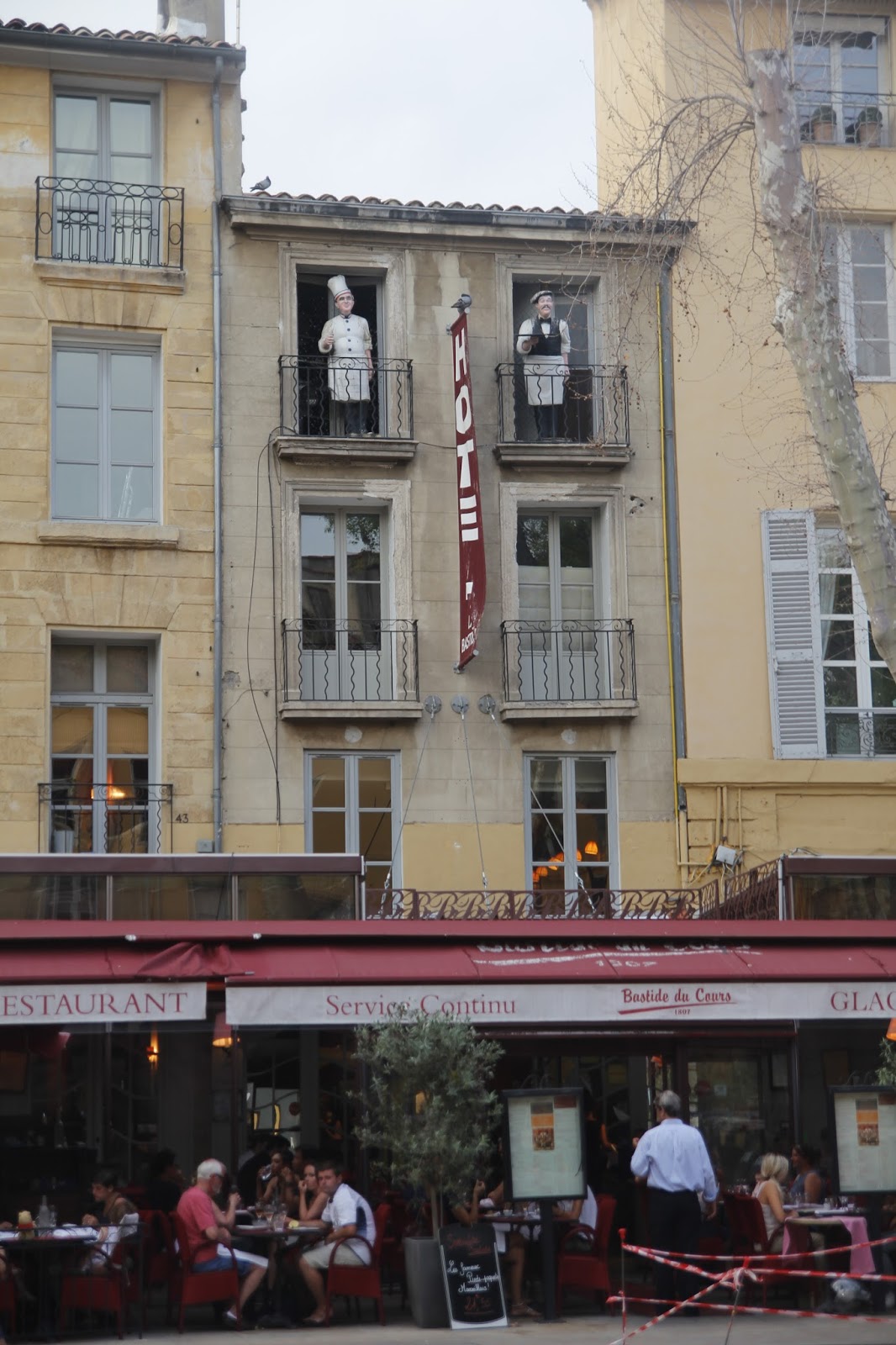 Bu geniş bulvara çıkan en güzel cadde fotoğrafta çeşmenin arka cephesinde kalıyor, caddenin bir tarafında cafe/restaurantlar dizili, diğer tarafındaysa Aix pazarının tezgahları var.