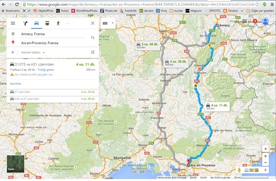 Temmuz 2015 İsviçre-Fransa-İtalya turumuzun bir parçası Aix, programımızın detaylarını daha önce anlatmıştım, linki de bu, tıkladığınızda yeniden ulaşabilirsiniz. Bu turun en uzun yolculuklarından biri Annecy’den Aix’e geçiş, çünkü artık gerçek anlamda en güneye iniyoruz. En güneye indikten sonra (yani Aix, Marsilya tarafı) artık mesafeler kısalacak ve biz bir gün içinde birçok yeri birden görmüş olacağız. Ama önce Annecy’den Aix’e inmemiz gerek. Vaktimiz az olduğu için yakınlardaki Avignon’u göremedik, eğer sizin vaktiniz varsa Avignon’u da görün, zira araştırdığımda çok güzel bir şehir olduğunu görmüştüm.
